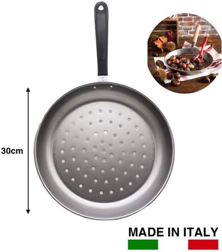 TRADE SHOP TRAESIO Poêle à Rôtir En Châtaignier 30 Cm Manche En Fer Ustensile De Cuisine