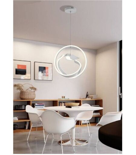 Dallo stile artistico, design moderno e dalla forma dinamica a cerchio, fanno di questo lampadario la scelta ideale per arredare come camere, saloni, openspace, studi e creare un effetto davvero speciale. Le linee sofisticate illuminate a led e l'uccello con corpo luminoso posto al centro daranno un tocco speciale ai tuoi ambienti.Caratteristiche:Potenza: 53 wattAngolo del fascio luminoso:360°Lumen: 4240 lumenCRI: RA>80Alimentazione: AC 220V-240V-50 Hz-60HzGradi Kelvin: 4000KDimensioni:1200x400x400 mmDimensioni base:10x150mmColore: BiancoRealizzato in alluminio verniciato e PVC ...