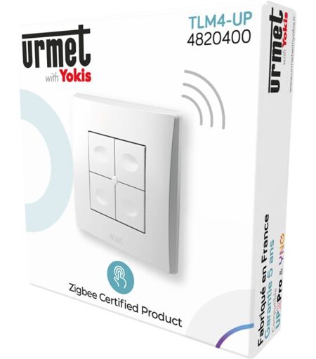 Commande murale Yokis 4 touches Disponible en 2,4 et 8 touches les télécommandes UP permettent d’emporter sont point de commande avec soit sur un porte clé. Le lanceur de scénario (TLC1-UP) et le galet (GALET4-UP) ont une vocation plus sédentaire et embarquent en supplément un capteur de température. Sur l’ensemble des TLM, la led de couleur bleue permet de les différencier des version YOKIS POWER. Les + du produit : Emetteur multi usages Deux Canaux Capteur de température intégré Permet de piloter directement un ensemble de produits UP et Zigbee Eviter d’avoir à sortir son smartphone et lancer une app pour lancer un scénario Caractéristiques du produit : Des émetteurs multi-fonctions En dehors de la gamme UP, les télécommandes Zigbee sont souvent limitées à un seul usage (éclairage, ouvrant, variation). Cette limitation est due à la nature du protocole Zigbee. Pour qu'une télécommande soit multi-usage, elle doit connaître tous les clusters possibles et être capable de communiquer ...