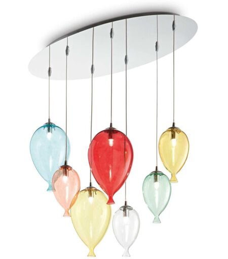 Ideal Lux - Clown - Pendentif en grappe de ballon ovale à 7 ampoules multicolores, G9
