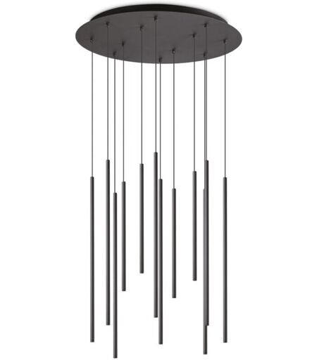 Ideal Lux FILO Plafonnier décoratif à 12 grappes de gouttes noir 3000K Finition : Noir Matériau : métal, aluminium Classement IP : IP20 Hauteur minimale : 86 cm Hauteur maximale : 150 cm Diamètre : 60 cm Type de lampe : DEL Nombre de lampes : 12 Ampoule incluse : Oui Kelvin : 3000K Poids : 8,6 kg Puissance (max): 21.7W ...