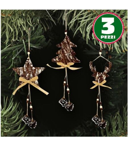 TRADE SHOP TRAESIO 3 Appendini Natale Corteccia Legno Con Pigne Fiocco Stella Albero Alce