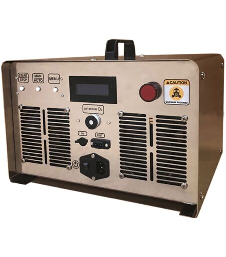 L'ozoniseur automatique professionnel programmable dispose de 2 générateurs d'ozone de 20 g/h et 20 g/h pour optimiser l'assainissement des petits et grands environnements et est contrôlé par un microprocesseur qui, via un capteur de mesure de la saturation en ozone dans l'environnement, est capable pour contrôler le bon degré d'ozone nécessaire pour détruire les bactéries, les virus, les moisissures, les odeurs et les micro-organismes tout au long du cycle de désinfection. Grâce à 3 boutons et un écran, il est possible de programmer les différents types de désinfection et d'adapter l'équipement au taille des locaux. Il est possible de sélectionner : « Cycle de désinfection » : message clignotant « Bactéries et virus » , ou « Mousse » « Taille locale » : « < 50 mètres cubes » (moins de cent mètres cubes) ou « > 50 mètres cubes (supérieur à cent mètres cubes jusqu'à max 800) Mètres cubes = L x l x H de la pièce Heure de démarrage du cycle automatique Type de fonctionnement cycle ...