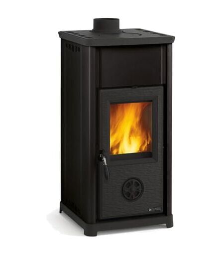 Poele a' bois La Nordica Extraflame Tea avec revetement en acier porcelaine noire 6,6 kw 189 m chauffable