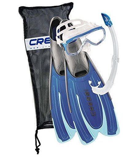 Palmes agua chaussante caractérisée par une voilure en matière flexible et souple qui fournit un palmage fluide et peu fatigant. Masque Onda il s'agit d'un masque à single verre, conçu pour le p.M.T., la natation et la plongée bouteille. Tuba Mexico possède un anti-éclaboussures profilé qui est capable de réduire considérablement les entrées d'eau par l'extrémité supérieure, sans gêner la respiration Confort et efficace, toujours au maximum. Fabriqué en Italie Type : Sport Fabricant : CRESX - #Cressi Sub S.p.A. ...