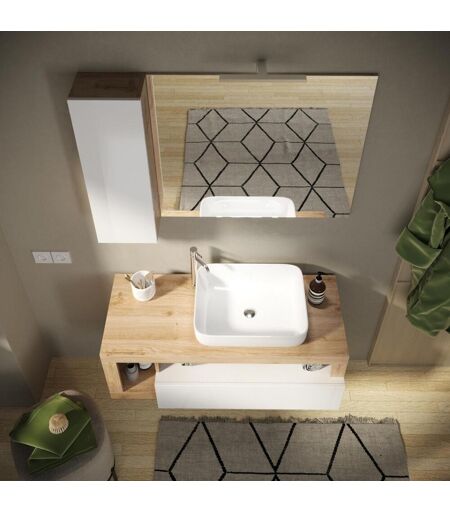 3Suisses : Le meuble de salle de bain suspendu Ancona est une réalisation haut de gamme de la marque 3S. x Home. Sa finition en chêne kadiz laqué brillant lui confère un aspect authentique et raffiné. Son design comprend un tiroir spacieux et deux niches pour maximiser l'espace de rangement. Il est équipé d'une vasque à poser de largeur 110 cm. La couleur Blanc de la vasque offre un contraste élégant avec le chêne. Le meuble est fabriqué en Contreplaqué (MDF) d'excellente qualité pour garantir sa durabilité. Robinet non compris Marque: 3S. x Home ...