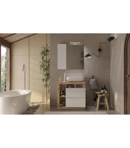 3S. x Home Meuble salle de bain sur pieds Ancona 2 Tiroirs 3 niches avec vasque à poser 78 cm unisex