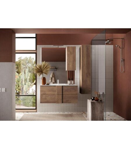 3S. x Home Meuble salle de bain suspendu coloris Chêne 2 tiroirs 100 cm unisex