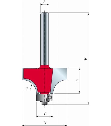 Mèche pour arrondi convexe série 34 24000 Tr/min D18,7 H12,7/54,9 Q8 Z2 - FREUD - F03FR01767