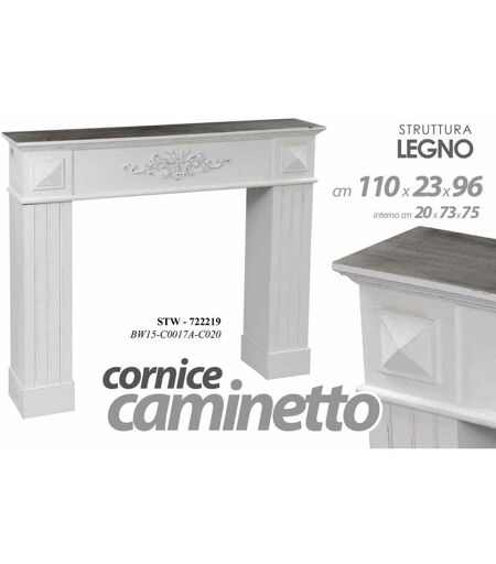 Cadre de cheminée de style shabby faux 110x23x96cm intérieur 20 x 73 x 75 cm structure en bois ...