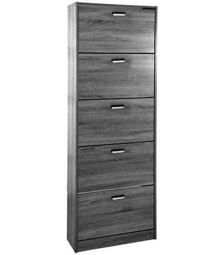 Meuble à chaussures gris moderne avec 5 rabats minces 63x24x180cm Livré en kit à installer Matière : bois mélaminé ...