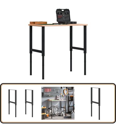 VIDAXL Cadres d'établi réglables 2 pcs Métal 55x(69-95,5) cm Noir - Cadre De Table - Pied De Table - Table Ajustable - Structure Métallique - Bureau