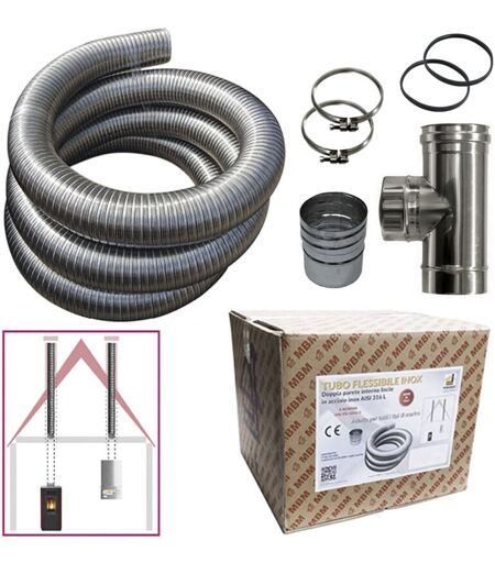 MBM Kit tuyau en acier inoxydable 316 flexible 3 mt diamètre 60 mm intérieur lisse à la norme CE EN 1856 2 conduit de fumée