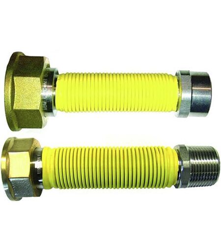 Tuyau flexible de gaz pour compteur 3/4-1'' ff 200/400 mm. Joints extensibles flexibles en acier inoxydable, avec raccords en acier inoxydable, recouverts d'une gaine jaune en materiau ignifuge non toxique, pour le raccordement du compteur de gaz au reseau. ...