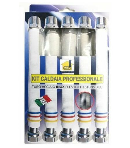 Kit de chaudière extensible, un tuyau de gaz flexible et de l'eau inoxydable 200 400 mm 2 1/2 n n 3 3/4 '' 200/400 mm mega unisuper inoxydable promoestensibile UNI 11353 DM 174 blanc avec trois anneaux d'identification utilisent en acier chaudière / kit de cuisine tuyau de gaz flexible d'eau de chaudière 200 400 mm 2 1/2 n n 3 3/4 '' 200/400 mm unisuper inoxydable extensible UNI 11353 DM 174 blanc avec trois anneaux d'identification utilisent en acier de la chaudière / cuisine les raccords de tuyaux extensibles à partir de l'alimentation en gaz / eau pour les appareils ménagers tels que les chaudières. extensible raccord flexible, adapté à gaz conformément à la norme UNI 11353, convenant à l'eau selon l' dm blanc avec trois anneaux d'identification utilisent gaine de protection externe résistant au feu toxique de polyoléfine thermorétractable, approuvé pour les connexions au réseau de gaz / eau, chaudières à chauffe-eau, etc .. joint extensible flexible, approprié pour une utilisation ...