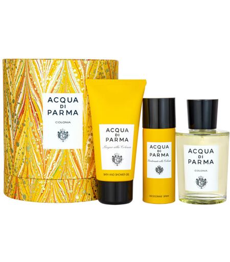 Acqua Di Parma Colonia - Eau de cologne Coffret (100ml Eau de Cologne + 75ml gel douche + 50ml déodorant spray)Description : Créée en 1916, Colonia exprime l'essence d'un style de vie - dynamique, moderne et naturellement authentique. Le mélange d'agrumes aux couleurs chaudes d'Acqua di Parma, composés de citron lumineux, de bergamote de Calabre et d'orange, libère des notes lumineuses qui révèlent le caractère pétillant de cette Eau de Cologne. Il s'amplifie ensuite dans le cœur aromatique de la fragrance où la lavande et les notes de rose se mêlent harmonieusement au romarin. Des notes boisées chaleureuses et délicates de vétiver, de bois de santal et de patchouli viennent parfaire cette Eau de Cologne emblématique. Colonia est présenté dans l'emblématique flacon Art déco d'Acqua di Parma. Les étiquettes blanches classiques font écho au dynamisme de l'Eau de Cologne, tandis que la boîte, qui se distingue par sa forme cylindrique, arbore la teinte jaune éclatant emblématique de notre marque. Notes Olfactives : Notes de tête : Citron, Orange douce, Bergamote de Calabre Notes de cœur : Lavande, Rose de Bulgarie, Verveine, Romarin Notes de fond : Vétiver, Bois de santal, Patchouli ...