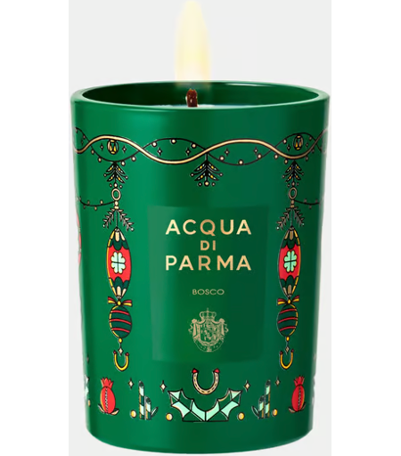 Acqua Di Parma Bosco Bougie Description : La magie est double lorsqu'une touche de chance plane dans une ambiance de fête inspirée par l'air frais de la forêt. Le parfum fascinant des sapins et la facette verte des aiguilles de pin givrées se mêlent à la fraîcheur vivifiante de l'eucalyptus, tandis que les notes contrastées du clou de girofle ajoutent une touche de chaleur. La bougie parfumée en édition limitée, présentée dans un pot en verre, est habillée de symboles de bonne fortune du monde entier, avec en vedette le fer à cheval, connu pour sa capacité à protéger l'espace où il est accroché. Tant que le fer à cheval pointe vers le haut, il garantit que la chance ne s'échappe jamais. Famille olfactive : Epicé ...