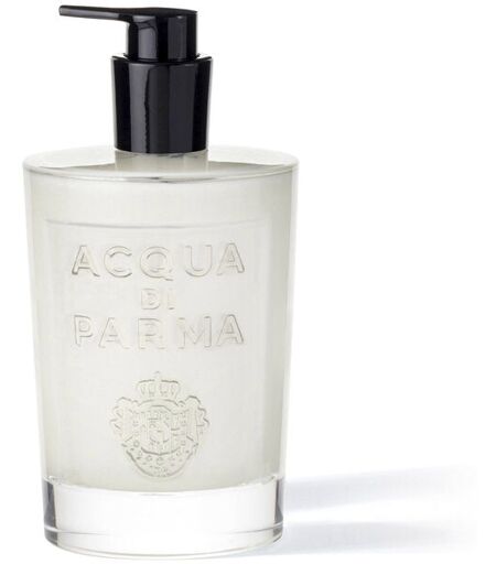 Acqua Di Parma Colonia - lotion pour les mainsDescription : La lotion pour les mains Colonia est un soin hydratant pour les mains, qui pénètre rapidement dans la peau. Cette lotion nourrit et hydrate, laissant les mains douces, souples et délicatement parfumées aux notes emblématiques de Colonia, sans laisser de résidu gras. La lotion pour les mains est présentée dans un luxueux flacon en verre de 330 ml, inspiré des flacons de parfum Art déco d'Acqua di Parma, avec l'emblème de la Maison embossé directement sur le verre. Un objet précieux qui peut être rechargé et réutilisé pour accompagner vos rituels personnels au fil du temps. Notes Olfactives : Notes de tête : Citron, Orange douce, Bergamote de Calabre Notes de cœur : Lavande, Rose de Bulgarie, Verveine, Romarin Notes de fond : Vétiver, Bois de santal, Patchouli ...