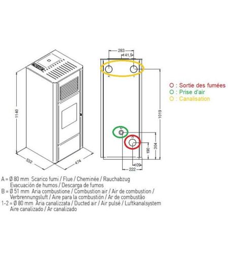 CFADDA Poêle à granulés double canalisation - PUNTO FUOCO Agata 14 kW Noir