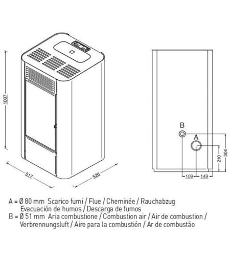 Le poêle à granulés ventilé Laila permets de chauffer un volume allant jusqu’à 300 m³, ce modèle est idéal pour les logements de taille moyenne à grande. Disponible en 3 coloris, le modèle Luana s'intégrera parfaitement dans votre salon. Informations sur le Poêle à granules ventilé - PUNTO FUOCO Laila 12.5 kW Brasier en acier Foyer en acier Écran LCD 6 touches Tiroir des cendres Ventilation frontale Sortie des fumées : Arrière Télécommande : INCLUSE Module WIFI : OPTION Caractéristiques techniques du Poêle à pellet - PUNTO FUOCO Laila 12.5 kW Puissance brûlée : Pmin 5.3 / Pmax 13.8 kW Puissance nominale : Pmin 5 / Pmax 12.5 kW Rendement : min 90 / max 94.5 % Volume de chauffe : de 200 à 300 m3 Dimensions : L 517 x H 1007 x P 526 mm Poids : 97 kg Consommation : de 1.1 à 3 kg/h Capacité du réservoir : 15 kg Diamètre sortie de fumées : 80 mm Diamètre arrivée d'air : 51 mm Classe énergétique : A+ Distance minimale des surfaces inflammables : côté 30cm / arrière 20cm / avant 100cm Schéma ...