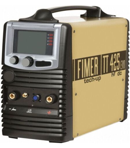 Le Fimer TIG TT 425 EVO est parfait pour les utilisations suivantes: charpente métallique, industrie chimique ou alimentaire, installations, réparations ,aéronautique, services maintenances, ... Fournis avec câble de masse. Caractéristiques : Marque : Fimer Plage de réglage : 5 A - 425 A Poids article : 31 KG Facteur de marche 100% : 350 A Facteur de marche 35% : 160 A Facteur de marche 60% : 425 A Puissance absorbée max : 12 KvA Modèle : TT425EVO Usage : TIG INVERTER HF DC 3 ph FUSIBLES RÉSEAU : 20 A Puissance de connexion recommandée : 15.5 KvA ...