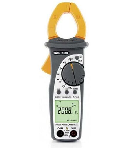 enquête TENSION DC/AC TRMS Courant AC TRMS Test de résistance/continuité Fréquence Puissance active, réactive, apparente ENERGIE active, réactive, apparente facteur de puissance Tension/courant harmonique Sens du champ rotatif/compatibilité de phase Sélection de plage automatique Maintien de la valeur (Data Hold) MAX/MIN/AVG/PEAK Rétroéclairage Coupure automatique de l'appareil (Auto-Power OFF) description La pince ampèremétrique professionnelle HT4022 vous offre des mesures de valeur efficace vraie (TRMS) pour le courant AC jusqu'à 400 A et la tension AC/DC, ainsi que la résistance, la continuité et la mesure de fréquence. De plus, ce modèle mesure la puissance active, la puissance réactive, la puissance apparente, le facteur de puissance cos φ et l'énergie, aussi bien dans les systèmes triphasés monophasés que symétriques, ainsi que la détermination du sens de rotation, avec une méthode innovante et brevetée basée sur une seule sonde de test. Grâce au capuchon de protection en ...