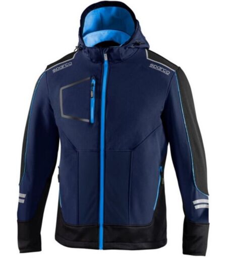 SPARCO York tech soft shell veste de travail d'hiver taille s bleu marine/bleu clair avec capuche amovible, inserts de renfort et bandes re'fle'chissantes