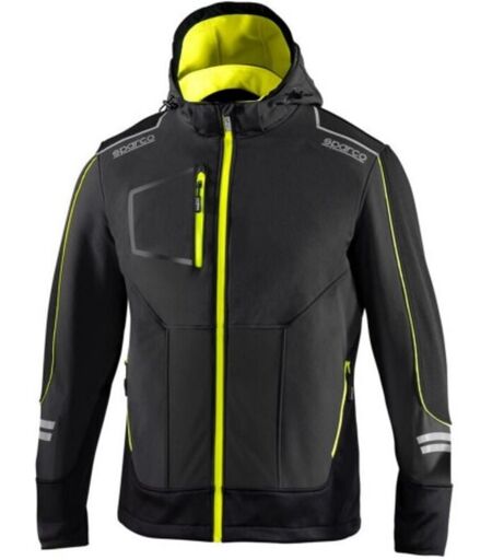 SPARCO York tech soft shell taille xxxl veste gris fonce'/jaune fluo veste de travail d'hiver avec capuche amovible, inserts de renfort et bandes