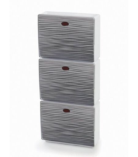 Meuble à chaussures modulable avec portes abattantes Wave tris gris 51x17x118 H cm Domopak Meuble à chaussures composé de trois pièces pouvant être montées à la fois verticalement et horizontalement. Structure blanche et façades décorées ondulées. Ouverture à rabat avec fermeture aimantée. Chaque porte peut contenir 3 paires de chaussures. La partie supérieure peut servir de plateau valet. Caractéristiques: Matériau polypropylène Dimensions : 51x17x118 H cm ...