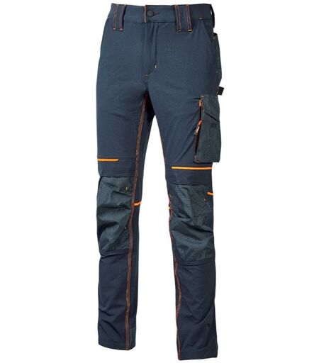 • Dotée de deux amples poches à l’arrière, élastiquée à la taille avec un sytème innovant de serrage invisible. • Bavette à l’arrière pour une meilleure protection lombaire et ruban rouge/reflex sur les passants postérieurs. • Poche latérale porte-outils, poche latérale multifonction avec porte badge rétractable, deux poches à l’arrière dont une avec patte et une avec fermeture velcro. • Deux poches porte-genouillère à ouverture facile par le haut, bas de pantalon entièrement renforcé en polyoxford 600D. • Poches zippées cachées sous la grande poche latérale et sous la poche avant droite. • Triple coutures. • Fermeture centrale par zip YKK et bouton anti-rayure, Slim Fit. ...