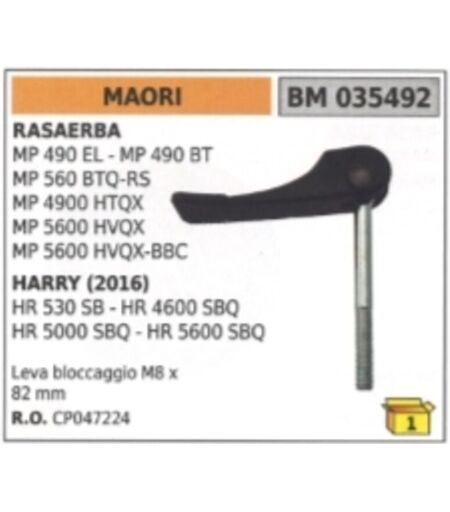 M8 x 82 mm LEVIER D'INDEXATION MAORI pour tondeuses MODÈLES : MP 490 EL - MP 490 BT MP 560 BTQ-RS MP 4900 HTQX MP 5600 HVQX MP 5600 HVQX-BBC HARRY (2016) HR 530 SB - HR 4600 SBQ HR 5000 SBQ - HR 5600 SBQ Part No. ...