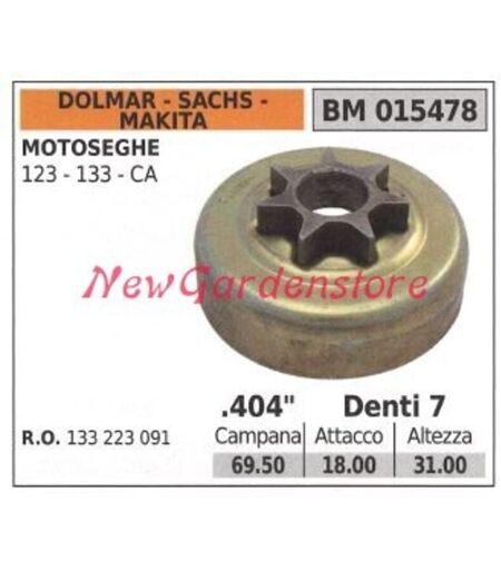 jl PIGNON POUR MOTEUR DE SCIE 123 133 CA .404" DENTS 7 CROCHET : 69.50 ATTACHEMENT : 18.00 HAUTEUR : 31.00 DOLMAR-SACHS-MAKITA Code : 015478 Code original : 133223091 ...
