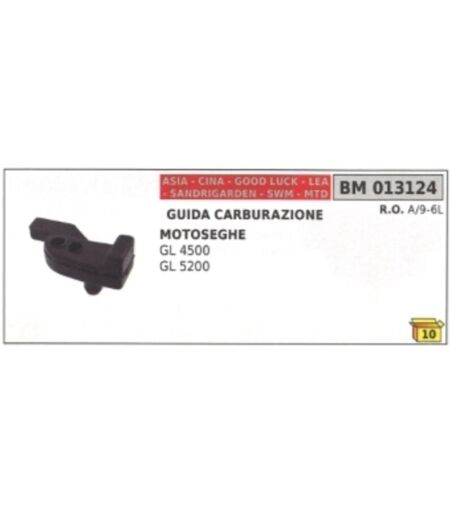 CARBURETTEUR GUIDE compatible avec ASIA - CHINA - GOOK LUCK - LEA SANDRIGARDEN - SWM - MTD pour MOTOCULSEUSES MODELES : GL 4500 GL 5200 CODE : 013124 ORIGINAL CODE : A/9-6L EM ...