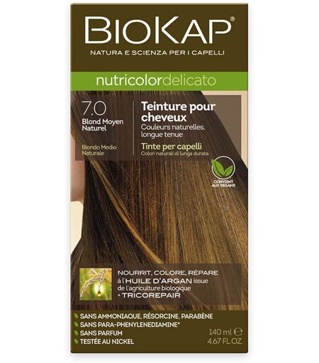 BIOKAP Nutricolor Delicato Teinture pour Cheveux 7.0 Blond Moyen Naturel Crème 140 ml