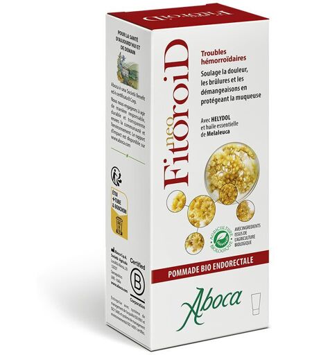 NeoFitoroid pommade bio est un produit à base de complexes moléculaires végétaux, qui exerce une action apaisante, en protégeant la muqueuse ano-rectale, utile pour lutter contre les troubles (douleurs, brûlures et démangeaisons), l'irritation et l'inflammation, présentes en cas d'hémorroïdes. L’ action de NeoFitoroid est obtenue grâce à Helydol, un extrait lyophilisé constitué de la fraction lipophile purifiée d'une sélection spécifique d'Hélycrise qui, enrichie en Aloe, Fragon faux-houx, huiles végétales et essentielles, soulage l'irritation, en protégeant la muqueuse, et en favorise la normalisation à travers 3 mécanismes d'action: Muco-adhésif : adhère à la muqueuse en formant un film à l'effet barrière qui la protège du contact avec les agents irritants ; Lubrifiant : réduit le frottement avec les selles, de manière à protéger contre l'irritation et la congestion périanale ; Antioxydant : protège la muqueuse des radicaux libres. En outre, NeoFitoroid crée un environnement défavorable à la croissance des micro-organismes, en exerçant une ultérieure action protectrice et de réduction des démangeaisons. Ses propriétés rafraîchissantes procurent un soulagement immédiat des gênes. NeoFitoroid ne contient pas de corticoïdes ni d'anesthésiques et, grâce à son mécanisme d'action, elle n'irrite et ne dessèche pas la muqueuse. Indication NeoFitoroid Pommade bio est indiquée pour le traitement des hémorroïdes (internes et externes) et des symptômes associés tels que douleurs, brûlures et démangeaisons anales et périanales. Elle peut être utilisée même en présence de fissures anales. NeoFitoroid Pommade bio peut être aussi utile en prévention et dans toutes les situations pouvant générer une irritation et/ou une congestion de la zone anale et périanale (constipation, diarrhée, alimentation et styles de vie inappropriés). NeoFitoroid Pommade bio peut être également utilisée durant la grossesse et l'allaitement. Conseils d'utilisation Pour une application externe, étaler et masser délicatement sur la zone anale et périanale. Pour une application interne, utiliser la canule endorectale prévue à cet effet en la vissant sur le tube. Appliquer une quantité de pommade suffisante pour recouvrir la partie affectée. Utiliser le produit après l'évacuation et après avoir soigneusement et délicatement nettoyé la zone anale et périanale. Pour un effet préventif contre l'irritation due au frottement, le traitement peut être effectué avant l'évacuation, en appliquant toutefois le produit également après. Après l'utilisation, dévisser la canule, la nettoyer soigneusement à l'eau chaude et au savon puis refermer le tube de la pommade. L'application peut être répétée plusieurs fois par jour, même à quelques heures d'intervalle, et pendant de longues périodes. Précautions d'emploi Ne pas utiliser le produit en cas d'hypersensibilité ou d'allergie individuelle envers un ou plusieurs des composants. Si les symptômes persistent, il est conseillé de consulter un médecin.... ...