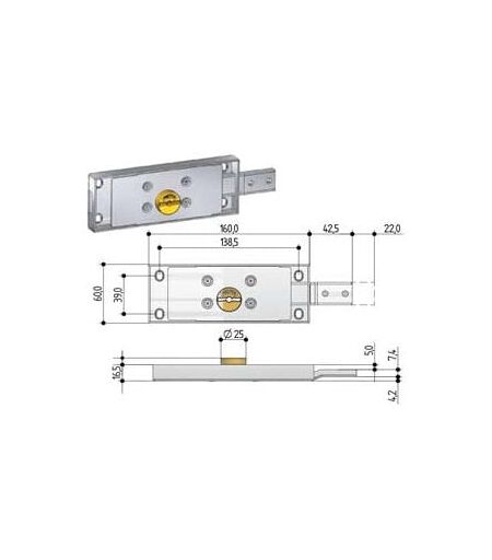 DX (8632.401) pour volet, coffre en acier galvanisé, pênes dormants pliés et renforcés, avec 5 gorges en acier galvanisé, mouvement avec clé, interne et externe, bague en laiton Pièces par colis primaire : 1,0 Largeur 6,7 Longueur 23,5 Hauteur 4,6 Poids 0,543 ...