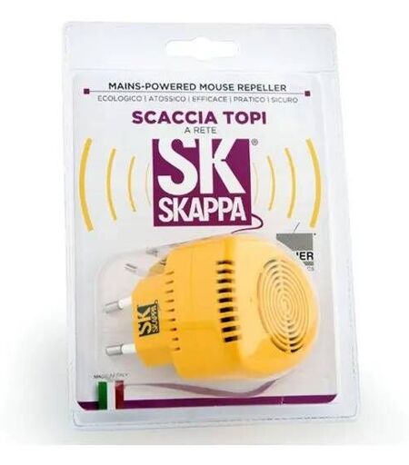 Skappa di Bruer, è la soluzione elettronica per allontanare i topi dalle nostre abitazioni o da tutti i luoghi che desideriamo proteggere. Dissuasore moderno e compatto, dispositivo che rappresenta la soluzione ideale, atossica ed ecologica, per combattere la presenza di roditori in casa, in garage, in cantina, in solaio, in magazzino, etc. Funziona mediante emissione di ultrasuoni a frequenza variabile (per evitare l'assuefazione) che non vengono percepiti dalle persone e dagli animali domestici, come cani e gatti. Come si usa: Skappa funziona alimentato dalla normale tensione di rete e ha un volume di copertura di circa 90 metri cubi (ovvero un locale di circa 6 x 5 x h3 metri di altezza). Affinché il dispositivo possa funzionare in condizioni di massima efficacia, deve rimanere sempre in funzione. Spefiche tecniche di Skappa: potenza: 230V AC - 50HZ - 1.6W.attaccabile a qualsiasi presa elettrica.prodotto made in Italy.dimensioni prodotto: circa 10cm. ...