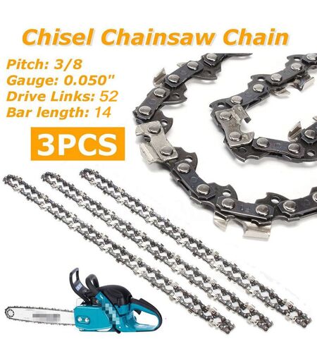 3pcs/set 14 Inch Chainsaw Saw Chain Drive Link Pitch 52 Link 3/8LP 050 Gauge Chainsaw Blade For Husqvarna 136 Garden Tools