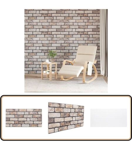 VidaXL Panneaux muraux 3D 10 pcs marron clair 100x50 cm EPS Vous pouvez facilement transformer un mur vide et monotone en un élément de décoration avec ces panneaux muraux 3D ! Les panneaux peuvent être appliqués partout en tant que revêtements muraux. Matériau résistant et durable : ces panneaux sont fabriqués en mousse EPS, ce qui les rend résistants à l'eau et faciles à nettoyer. En outre, ces panneaux n'isolent pas seulement de l'humidité, du froid, de la chaleur et de la voix, mais conservent également leur forme au fil du temps. Isolation thermique : le matériau de ces panneaux assure l'isolation thermique, ce qui contribue à maintenir la stabilité de la température à l'intérieur. Design exquis : les revêtements muraux ont une texture de brique réaliste qui ajoute une touche rustique à votre pièce. Nombreuses utilisations : d'aspect artistique, les papiers peints 3D sont parfaits comme revêtements muraux pour la chambre à coucher, le salon, le couloir, le hall d'entrée, l'hôtel, ...