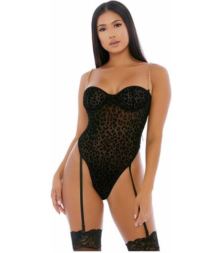 À la fois chic et sensuelle, découvrez une collection sexy, branchée et de renommée mondiale pleine de style et d’attrait ! Découvrez l'irrésistible Body Jarretelles Chain Your Mind Noir de la marque Forplay ! Un body mêlant maille fine transparente noire habillée de motifs léopard qui mettra outrageusement votre corps en valeur pour vous rendre aussi sexy que provocante. Un décolleté doté d'armatures ornées de bretelles en chaînes dorées réglables pour rehausser votre poitrine tout habillée de léopard ultra sexy. A l'arrière vous retrouverez une coupe échancrée léopard pour dévoiler vos fesses. Sa coupe incroyablement sexy mettra en valeur vos courbes avec une ouverture dans le dos sensuelle. Ses jarretelles réglables permettront d'accorder vos bas préférés et ajouter une touche très féline en plus à votre tenue ! Composition: 95% Polyester, 5% Elasthanne Tailles S, M, L, XL ...