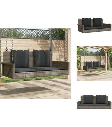 VIDAXL Balancelle avec coussins gris 119x56x48 cm résine tressée - Balancelle De Jardin - Banc De Jardin - Chaise Suspendue - Fauteuil Suspendu - Relax