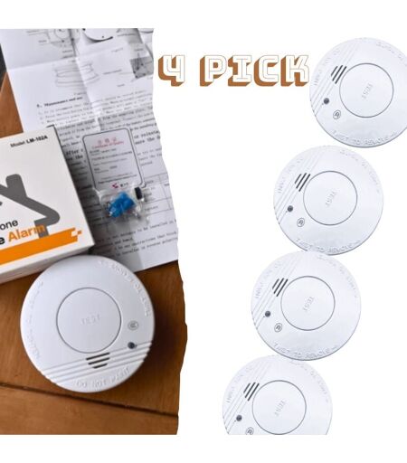 KZQ - Lot de 4x détecteurs de fumée nf - Garantie 5 ans - Autonomie 3 ans - Livrés avec pile et accessoires de pose