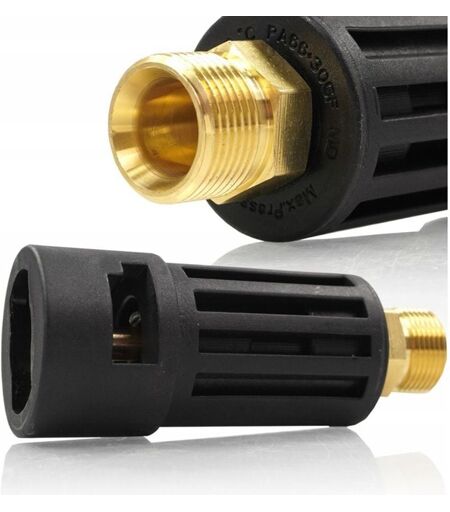 Adaptateur à baïonnette pour les nettoyeurs haute pression professionnels Kärcher, WAP, Kränzle. Par exemple : pour pistolet haute pression avec filetage intérieur M22 à la sortie de M22-AG à la connexion à baïonnette. Nouveau, très bonne qualité massive, non original Karcher. Cet adaptateur permet de raccorder par exemple les accessoires de la série Kärcher K avec un raccord à baïonnette, comme les tuyaux à haute pression, les lances ou les nettoyeurs de terrasse, etc. à des appareils HD avec un filetage intérieur M22. Transformez votre raccord à baïonnette en filetage extérieur M22. Fabrication stable et robuste, l'intérieur est en métal et non en plastique ! L'adaptateur a un filetage extérieur M22. Raccord : accessoires Kärcher baïonnette laiton - raccord solide au pistolet HD M22 AG pour une utilisation professionnelle et en atelier, fabrication robuste. Il ne s'agit pas d'un adaptateur Karcher d'origine. Fabrication solide avec intérieur métallique et protection de la poignée. ...