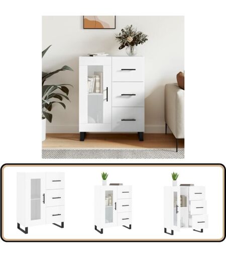 VidaXL Buffet Blanc brillant 69,5x34x90 cm Bois d'ingénierie Ce buffet classique a un aspect intemporel, ce qui en fait un complément parfait pour votre maison. Matériau robuste : le bois d'ingénierie est d'une qualité exceptionnelle avec une surface lisse et présente également résistance, stabilité et résistance à l'humidité. Grand espace de rangement : doté de 3 tiroirs et de 2 compartiments derrière la porte en verre, le buffet offre un grand espace pour garder vos divers éléments essentiels du quotidien organisés et à portée de main. Fonction d'exposition : le dessus robuste de cette armoire est idéal pour exposer des objets décoratifs, des cadres photo et des plantes en pot. Porte pratique : gardez vos essentiels à l'abri de la poussière en les cachant derrière la porte de l'armoire de rangement. Pieds en métal : les pieds en métal ajoutent un style calme à votre intérieur tout en assurant la stabilité. Attention : Pour éviter qu'il ne soit renversé, ce produit doit être utilisé ...