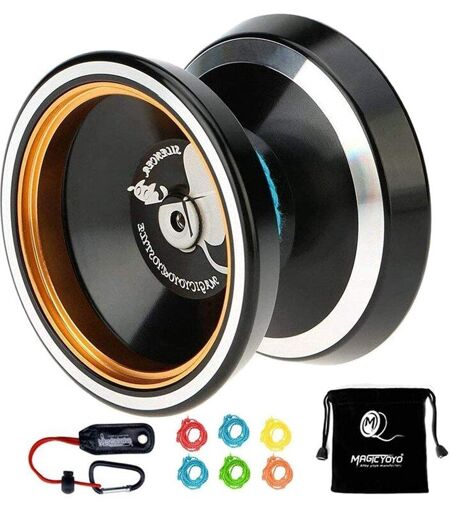 MAGICYOYO – Yoyo professionnel M001-B, Yoyo intermédiaire en alliage d'aluminium avec anneau en métal + 5 cordes supplémentaires + sacMagicyoyo M001 - M001 les anneaux de corps et de poids de Black Yoyo sont tous en alliage 6061, et vous serez choqué par la stabilité et ses performances ultra-lisses. Retour lié requis yoyo. Super produit phare yo-yo insensible pour les joueurs intermédiaires et avancés avec des tours de chaîne de style yoyo (1A, 3A, 5A), nous recommandons d'apprendre plus de compétences yo-yo sur YouTubeNoir Yo Yo Yo M001 est livré avec Boby en forme de H, en alliage d'aluminium 6061.Belle forme de corps de papillon avec jantes argentées, axe en acier pour une rotation en douceurYoyo large et grand, optimisé pour trouver le meilleur équilibre, longs temps de rotation, stabilité et facilité d'attraper sur la ficelle!Pour les yoyoers intermédiaires et avancés, c'est aussi un bon cadeau pour vos enfants et amis.Couleur: noirMatériel: alliage d'aluminiumTaille: diamètre 57.12mmContenu de l'emballage:1 x yo-yo6 x corde (couleur aléatoire, n'acceptez pas la couleur spécifiée)1 x sac de velours1 x taille suspendusSeul le contenu de l'emballage ci-dessus, les autres produits ne sont pas inclus.Remarque: la prise de vue légère et les différents affichages peuvent rendre la couleur de l'article dans l'image un peu différente de la réalité. L'erreur de mesure autorisée est de +/- 1-3cm. ...