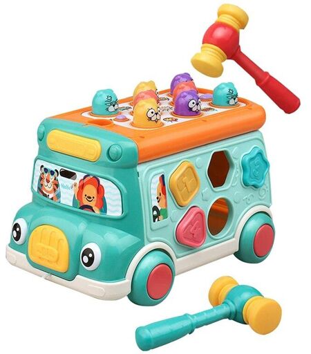 Jouet Xylophone pour bébé, Bus de musique, jouet éducatif, cadeau pour enfantJouet bus multifonctionnel pour bébé: le bus jouet adopte un design de dessin animé mignon, avec des jeux de combat intéressants, correspondance des formes, connexion des engrenages, volant de voiture, correspondance des animaux, horloge jouet. Une variété de façons de jouer, apportez un plaisir sans fin, votre petit bébé tombera certainement amoureux de ce jouet d'apprentissage précoce du bus!Panneau détachable 2-en-1: le panneau supérieur de la voiture principale peut être détaché. D'un côté se trouve le jeu whack-a-taupe, équipé de 2 marteaux. Les enfants peuvent jouer à des jeux Whack avec leurs amis et leur famille pour améliorer l'interaction. De l'autre côté se trouve la conception du volant de voiture, où les enfants peuvent simuler la conduite et développer des compétences d'interaction.Bus de musique avec lumières et sons: lorsque l'étoile de jeu whack-a-taupe, le panneau émettra des lumières et des sons. Il y a 8 modes au total, et vous pouvez basculer entre différents modes en appuyant sur le bouton de commutation violet. La taupe s'allume, et si vous la frappez, vous obtiendrez un retour sonore. Les effets sonores dans différents modes seront différents et violemment décalés.Matériau sûr et durable: il est fabriqué dans un matériau de haute qualité, avec des bords lisses et sans bavures, durable et sûr. Il y a une corde à l'avant du bus. Lorsque les enfants tirent la corde, le bus avance. C'est un super jouet de bus scolaire, adapté aux cadeaux d'anniversaire pour garçons et filles.Facile à ranger: la porte arrière du jouet de voiture pour bébé peut être ouverte et il y a un espace de rangement intégré. Votre enfant peut mettre les blocs de construction et 2 marteaux dans le bus, ce qui est pratique pour le stockage et développe de bonnes habitudes de rangement pour l'enfant.Couleur: bleu + couleurMatériau: ABS + composants électroniquesTaille: 23.5x17x15cmContenu de l'emballage:1 x voiture intelligente multifonctionnelleSeul le contenu de l'emballage ci-dessus, les autres produits ne sont pas inclus.Remarque: la prise de vue légère et les différents affichages peuvent rendre la couleur de l'article dans l'image un peu différente de la réalité. L'erreur de mesure autorisée est de +/- 1-3cm. ...