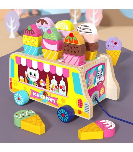 Jeu De Rôle De Camion De Crème Glacée Multicolore, Ensemble De Véhicules En Bois, Jouet Pour Les Tout-Petits