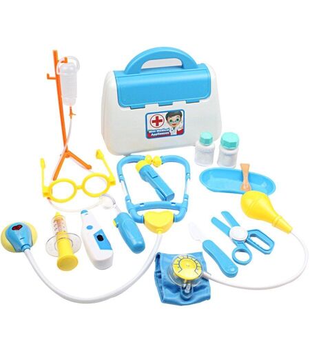 Caractéristiques:Haute qualitéFabriqué en matériau ABS de qualité, non toxique et sans danger pour les enfants.Jeu de rôle jouetsLes jouets de jeu de rôle peuvent satisfaire l'intérêt imitant le bébé, refléter son imagination et sa créativité, et aider le bébé à grandir en bonne santé et heureux.DiversCet ensemble comprend des kits médicaux, des stéthoscopes, des lampes de poche, des thermomètres cliniques, des miroirs dentaires, des scalpel, des bouteilles de médicaments et de nombreux autres appareils médicaux. Le contenu est très riche et complet.Développer enfants capacitésIl peut cultiver la capacité de coordination ¿il-main des enfants, stimuler la créativité des enfants, cultiver la capacité cognitive sensorielle et améliorer la capacité pratique.PortableTous les kits médicaux de jouets sont bien agrippés pour que les petites mains puissent les saisir. Il y a une boîte médicale, qui peut contenir tous les articles, ce qui rend le stockage plus pratique.SpécificationsType: jouets de docteur pour enfantsMatériel: ABSQuantité: 1setCouleur: bleu/roseBoîte médicale: 19*21cm/7.47*8, 25 poucesPoids Net: 500g/17.64ozPaquets:1 ensemble * jouets de docteur pour enfants ...