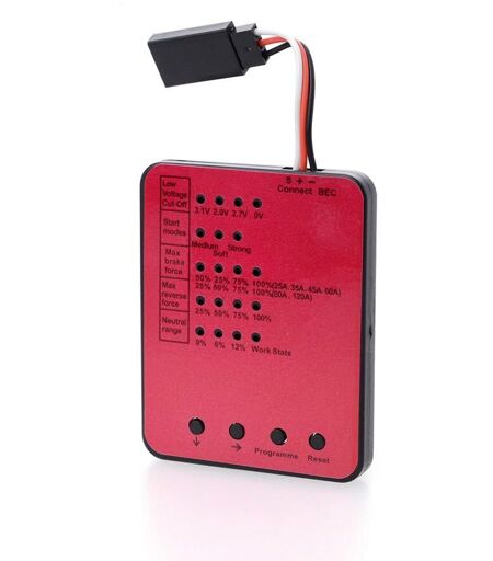 SurpassHobby ¿ Contrôleur de Vitesse Électronique ESC, pour voiture RC, carte de programmation série KK, avec LED, 25/35/45/60 A/80 A/120 A/150 A, Caractéristiques: Poids léger Facile à utiliser Conception portative Spécialement conçu pour ESC sans balais vendu dans notre magasin Spécifications: Marque: SURPASSE LE PASSE-TEMPS Coupure basse tension: 3.1V/cellule 2.8V/cellule 3.3V/cellule pas de coupure Mode de démarrage: moyen, doux, fort Force de freinage maximale: 25%, 50%, 75%, 100% Force inverse maximale: 25%, 50%, 75%, 100% Plage neutre: 6%, 9%, 12%, état de fonctionnement Informations Sur l'emballage: Taille de l'emballage: 8*6.5*5cm / 3.1*2.5*2 pouces Poids du colis: 38g / 1.3oz Marque paquet de boîte-cadeau Liste de paquet: 1 * Carte de programmation ...