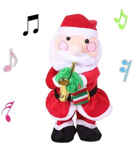 Puces:Décoration de noël: c'est un ornement ravissant qui ajoute une atmosphère de noël.Design intéressant: le design du bonhomme de neige, du père noël et de l'élan est très amusant et vivant.Jouet Musical: lorsque vous appuyez sur l'interrupteur, il joue du saxophone et balance son corps avec la musique.Rendre l'atmosphère: poupées de noël de musique électronique, vous apportent, à vous et à votre famille, un peu de joie.Tissu en peluche: fabriqué en tissu doux, il est durable et confortable à manipuler.Description:Matériel: pelucheTaille: environ30CMStyle: père noël/bonhomme de neige/ElkAlimentation: 3 piles AA (non incluses)Mode d'emploi: chargez 3 piles AA (non incluses), poussez l'interrupteur sur ""ON"", puis pincez le bouton.Note:La danse et le chant peuvent durer environ 30 secondes, et vous devez appuyer sur le bouton pour l'activer à nouveau.Le forfait comprend:1 * jouet en peluche musicalListe de colisage1 * jouet en peluche musical ...